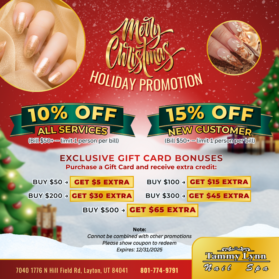 Are you looking for your go-to nail and beauty salon? Look no further than Tammy Lynn Nail & Spa in Layton, UT 84041. Our goal is to help you continue your wellness journey by providing you with rejuvenating nail and skin care services.